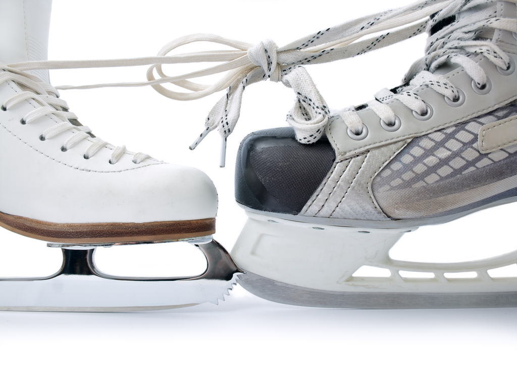 Most ice rinks offer hire skates with either hockey blades or figure blades (some rinks only stock one type).
